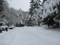 上記写真のように木の枝に着雪した重い雪が下に落ちてくる