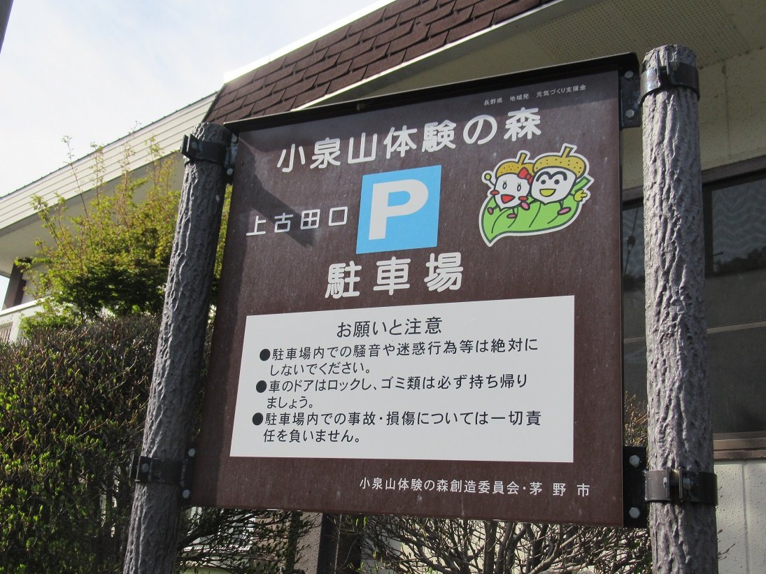 看板の脇の細い道を入り、上古田公民館の駐車場に車を停めます。